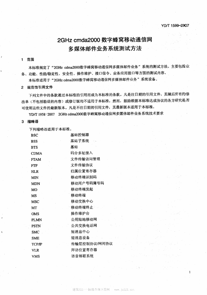 YD/T 1599-2007 2GHz cdma2000 数字蜂窝移动通信网多媒体邮件业务系统测试方法