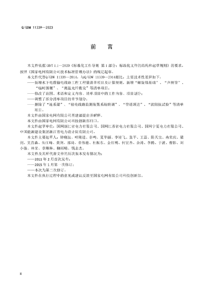 Q/GDW 11339-2023 输电线路工程工程量计算规范