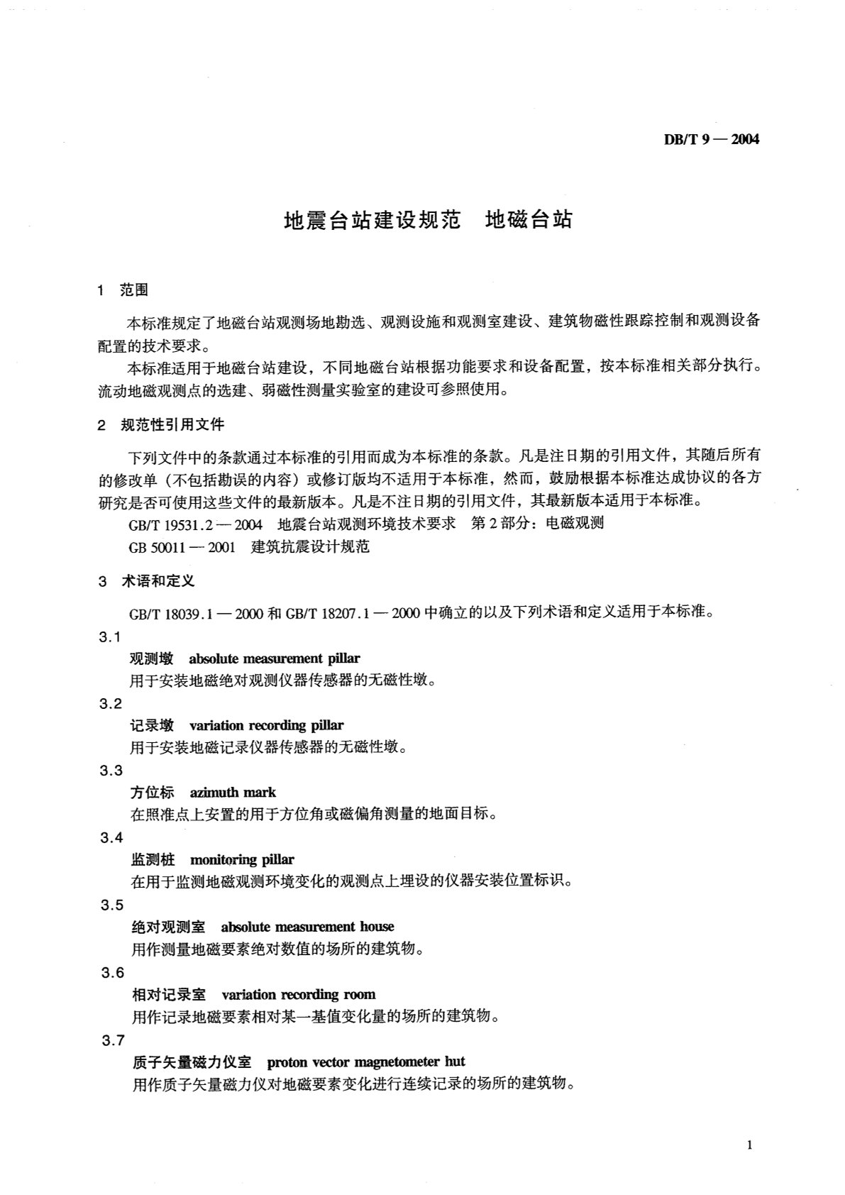 DB/T 9-2004 地震台站建设规范 地磁台站