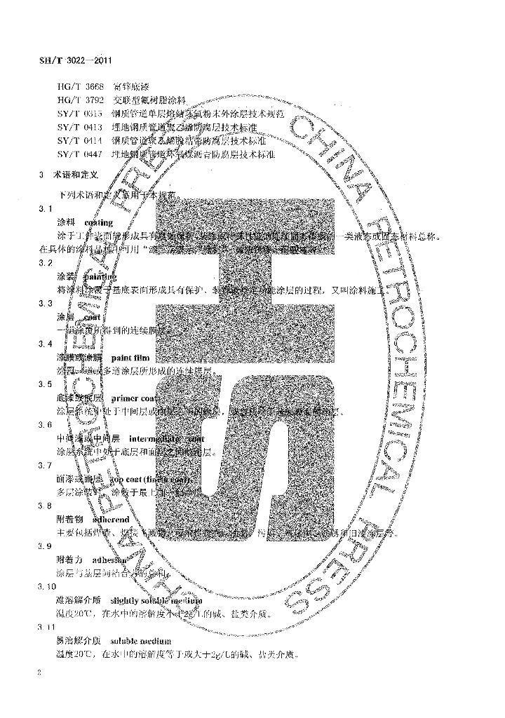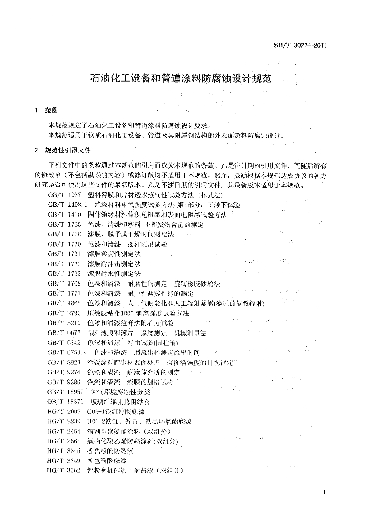 SH/T 3022-2011 石油化工设备和管道涂料防腐蚀设计规范