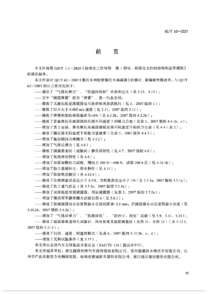 浙江路得坦摩汽车部件股份有限公司、常州豪爵铃木摩托车有限公司、台州市产品质量安全检测研究院、临海市鹿城机车部件有限公司、浙江钱江摩托股份有限公司