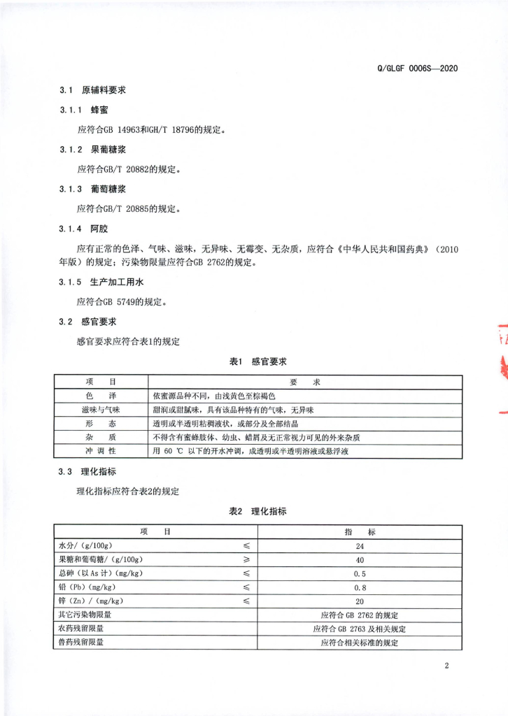 Q/GLGF 0006S-2020 调制蜂蜜制品