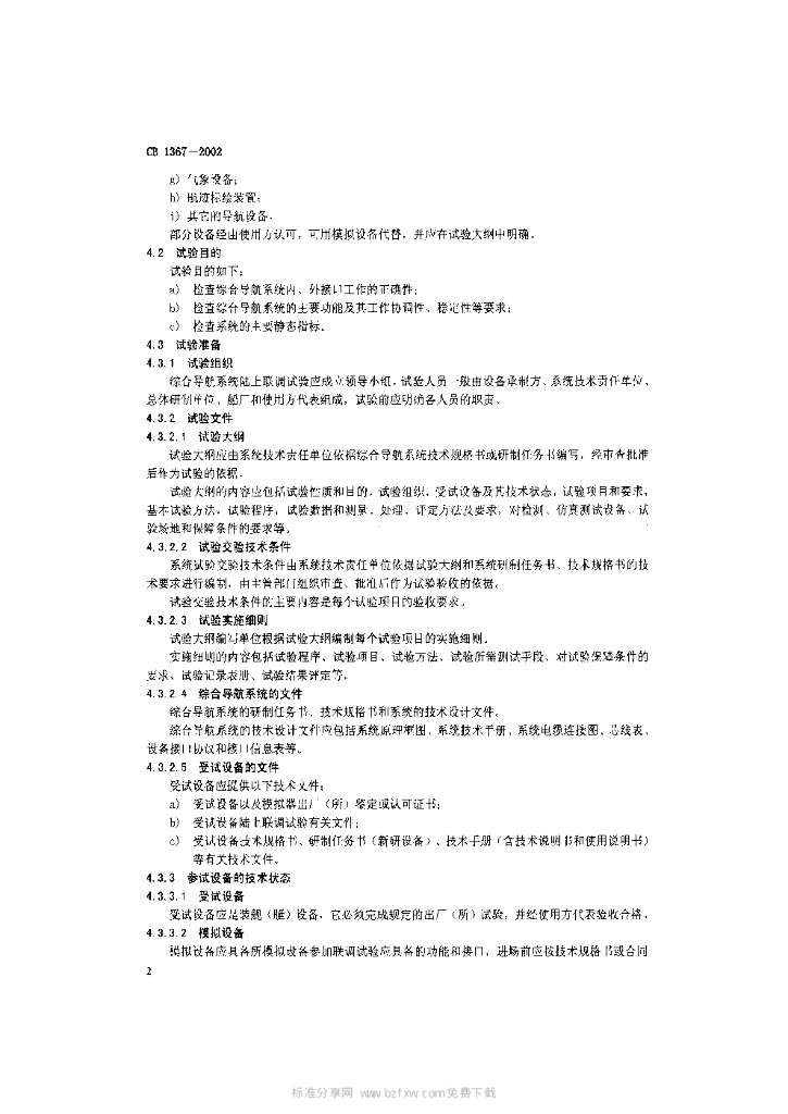CB 1367-2002 综合导航系统陆上联调试验规程