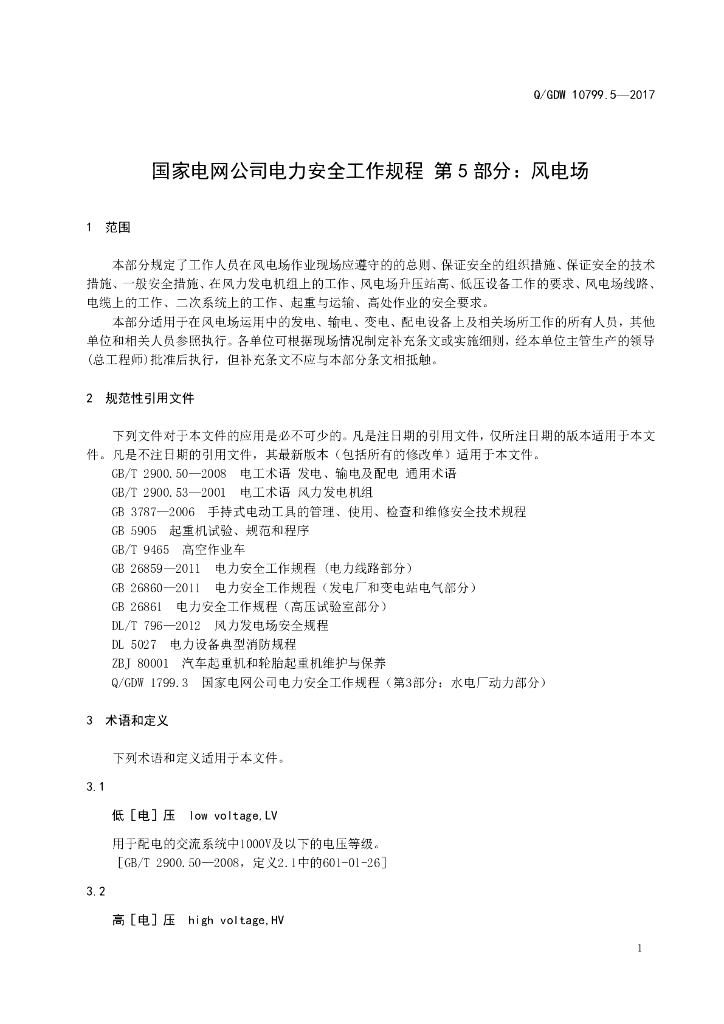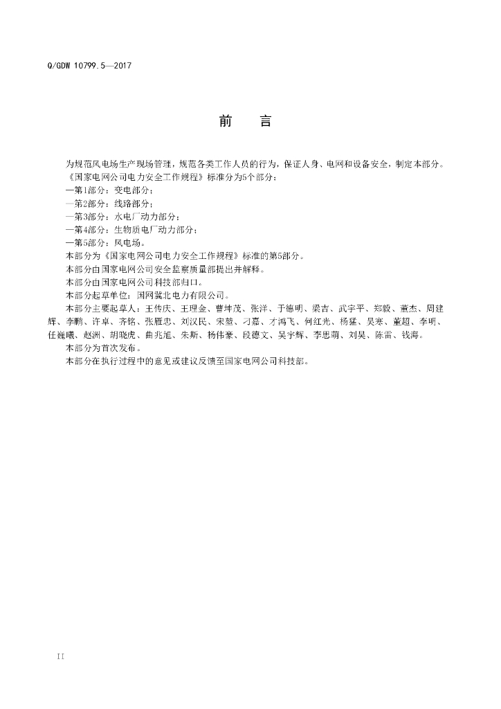Q/GDW 10799.5-2017 国家电网公司电力安全工作规程 第5部分:风电场