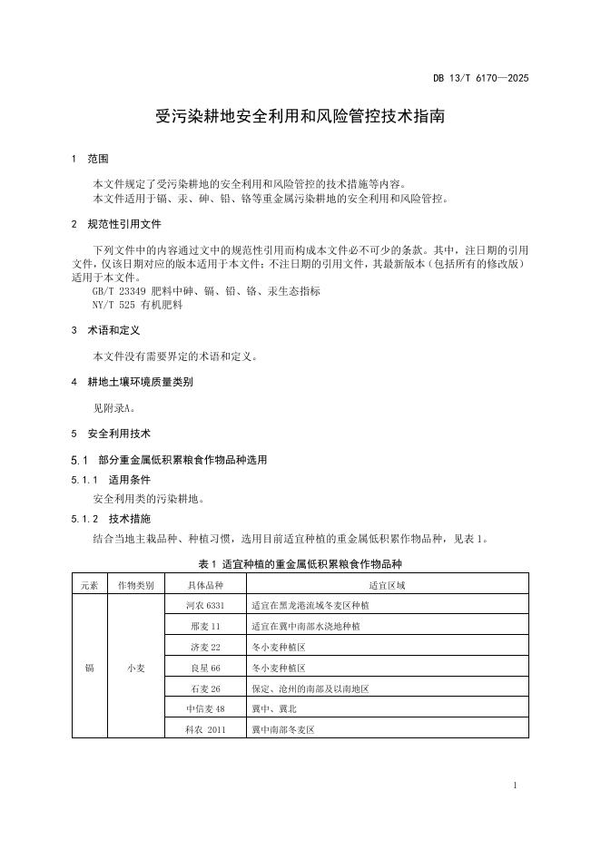 DB13/T 6170-2025 受污染耕地安全利用和风险管控技术指南