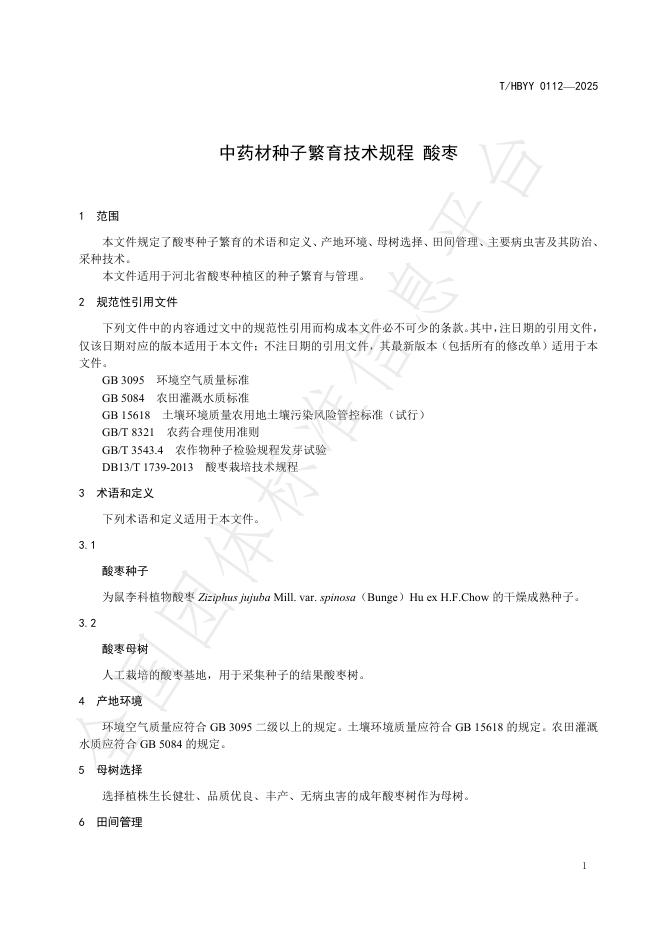 T/HBYY 0112-2025 中药材种子繁育技术规程 酸枣