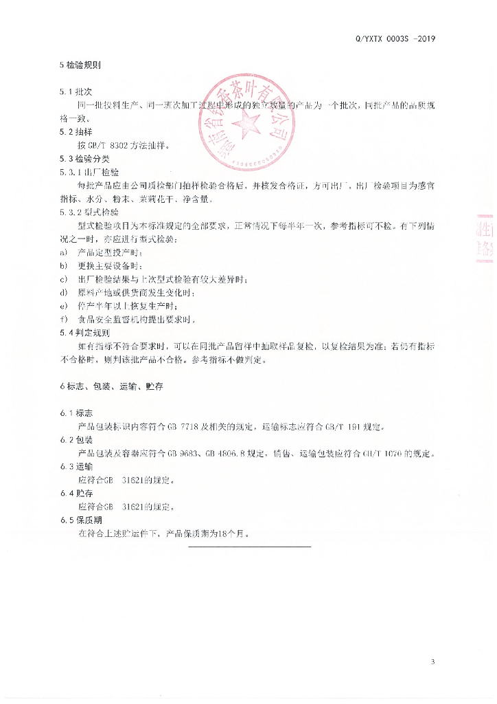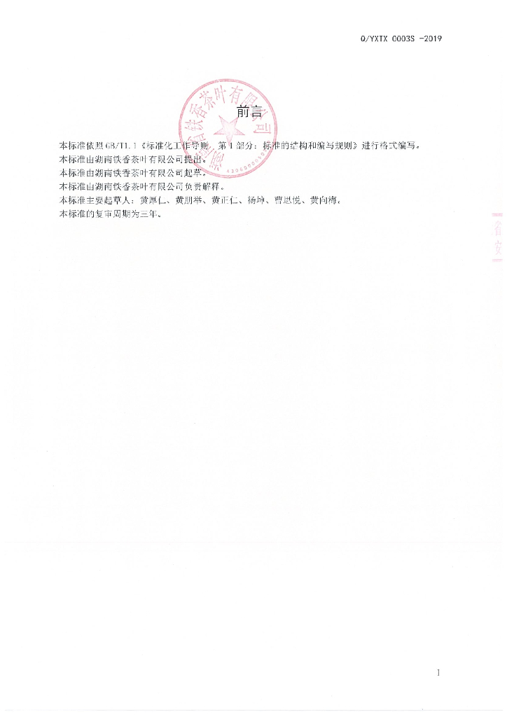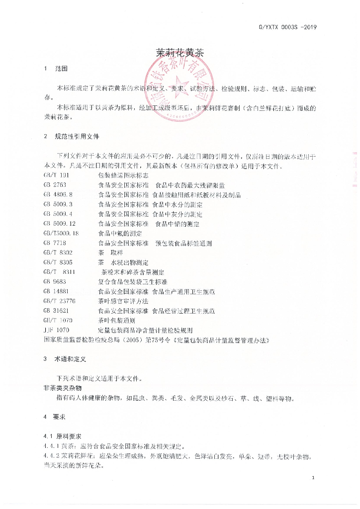 Q/YXTX 0003S-2019 茉莉花黄茶