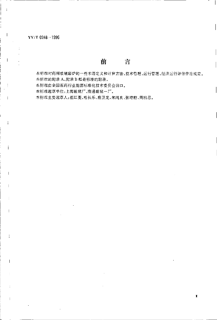 YY/T 0248-1996 药用玻璃窑炉经济运行管理规范