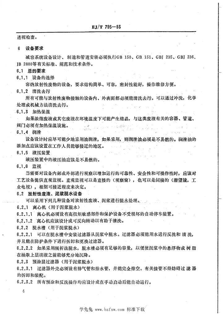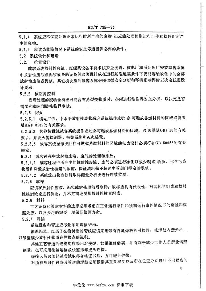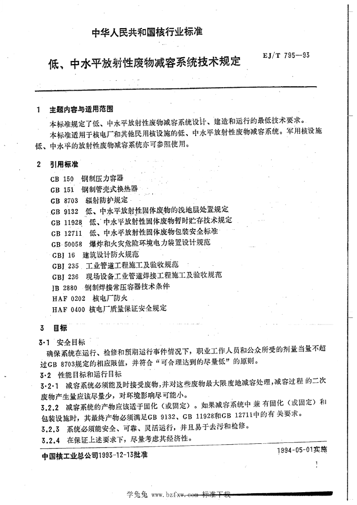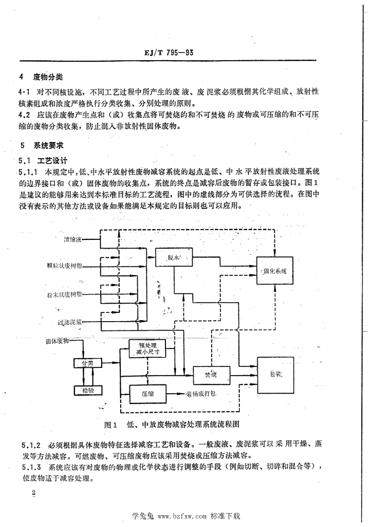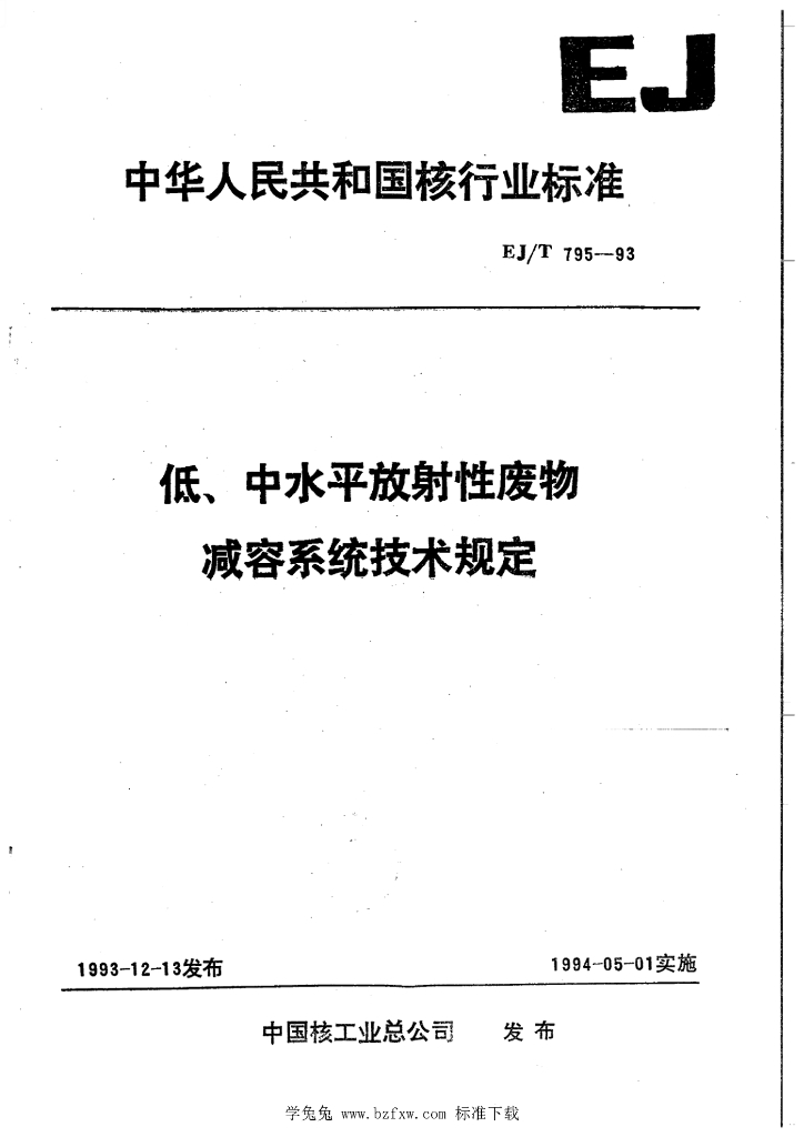 EJ/T 795-1993 低、中水平放射性废物减容系统技术规定