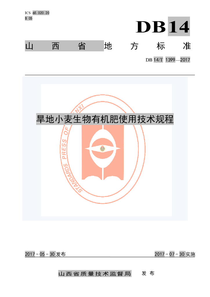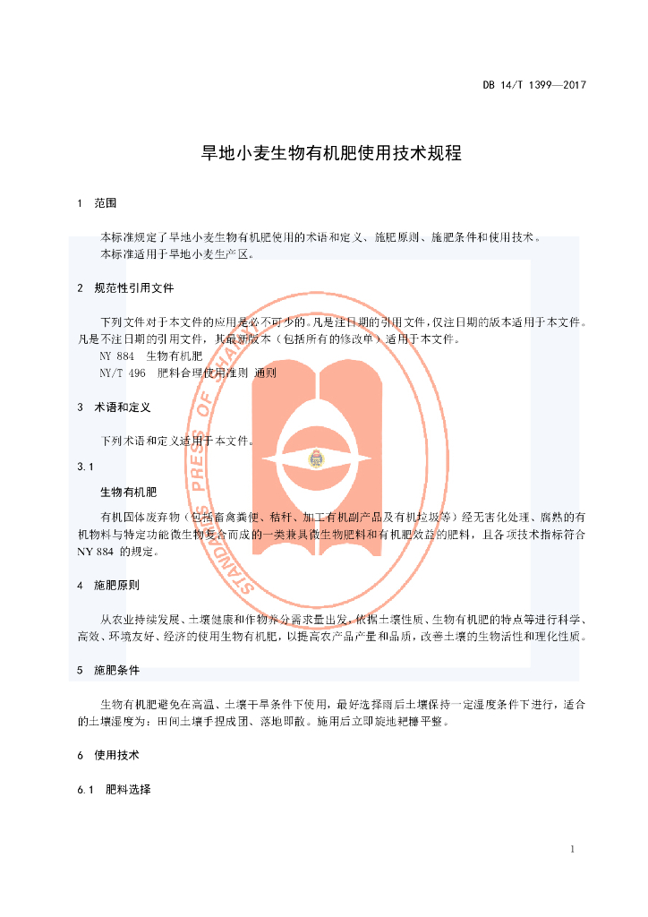DB14/T 1399-2017 旱地小麦生物有机肥使用技术规程