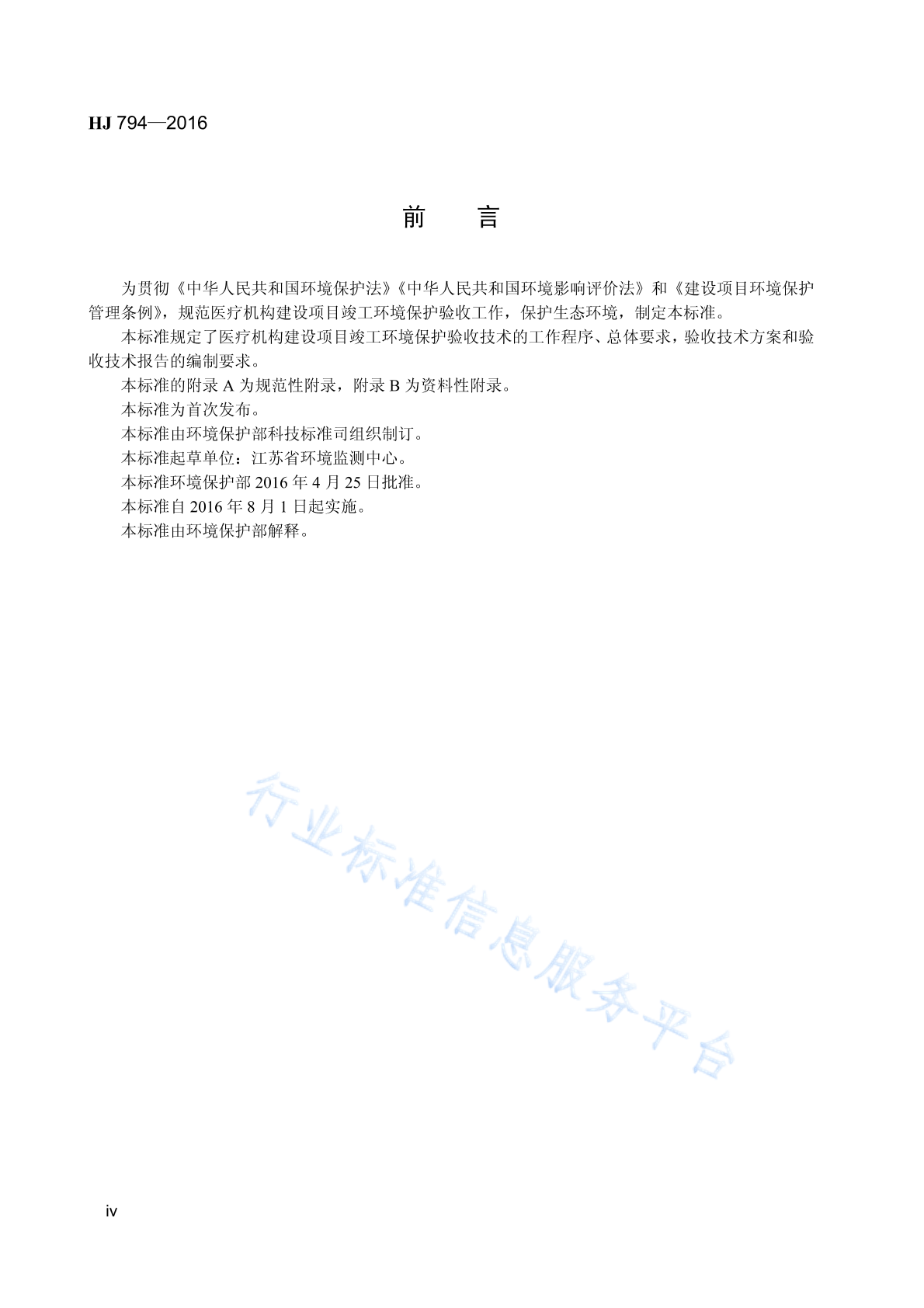 HJ 794-2016 HJ794-2016建设项目竣工环境保护验收技术规范 医疗机构