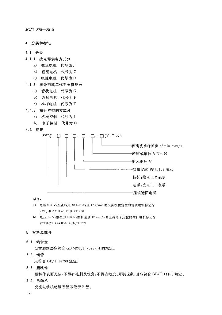 JG/T 278-2010 建筑遮阳产品用电机