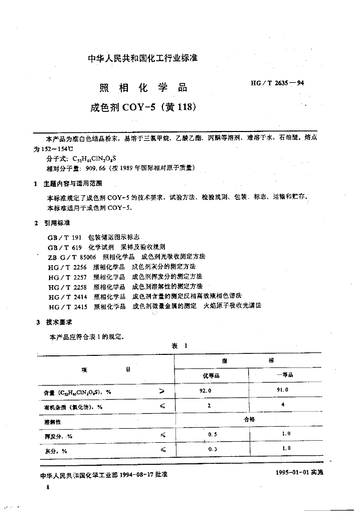 HG/T 2635-1994 照相化学品 成色剂COY-5(黄118)