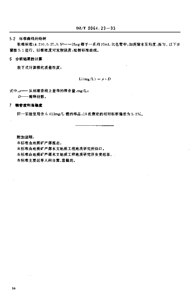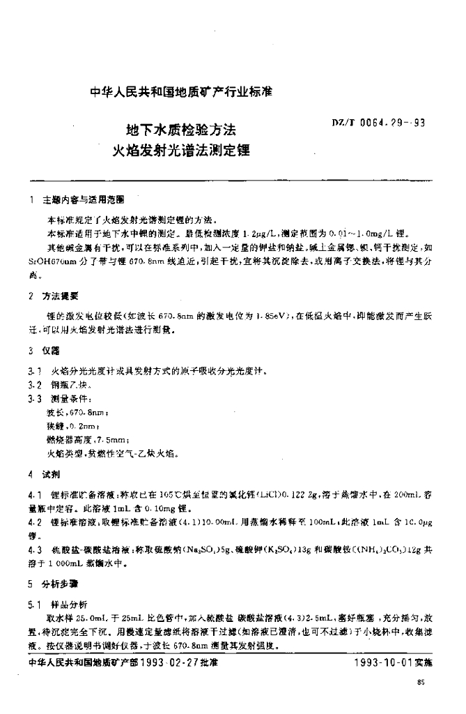 DZ/T 0064.29-1993 地下水质检验方法火焰发射光谱法测定锂