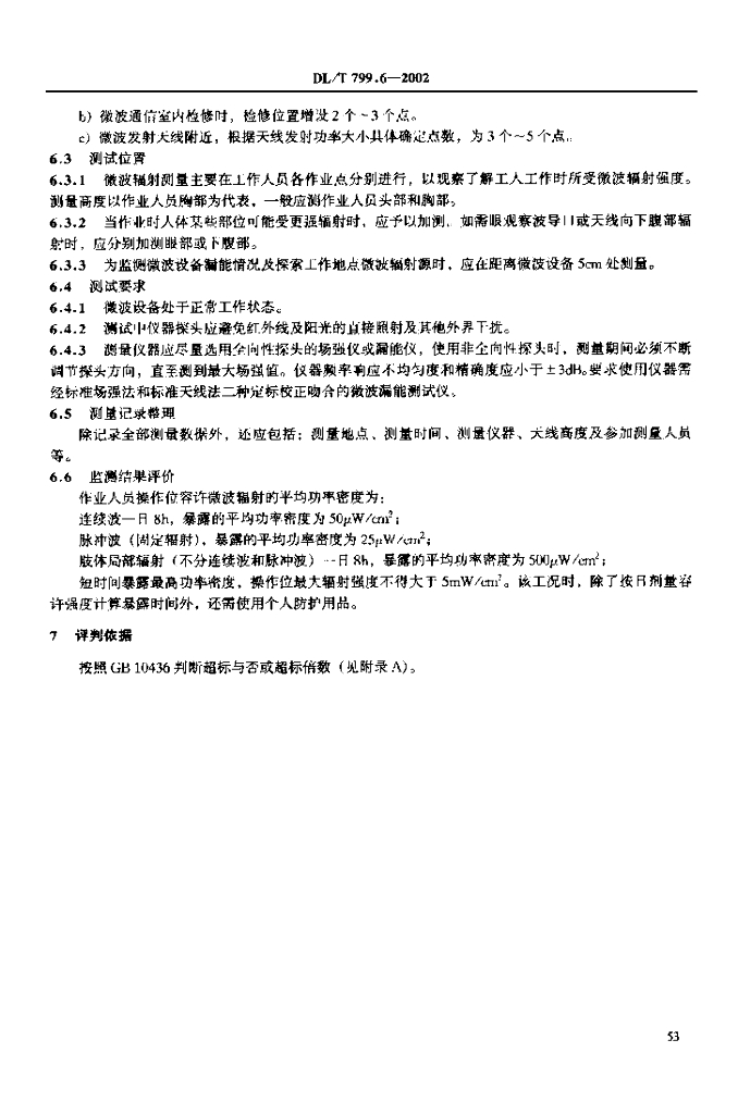 DL/T 799.6-2002 电力行业劳动环境监测技术规范 第6部分:微波辐射监测