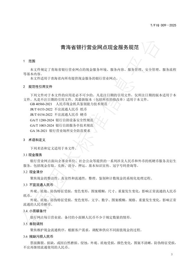 T/FIQ 009-2025 青海省银行营业网点现金服务规范