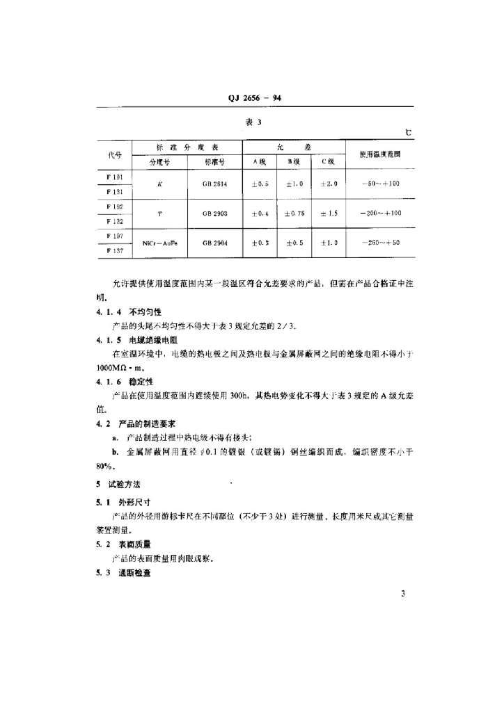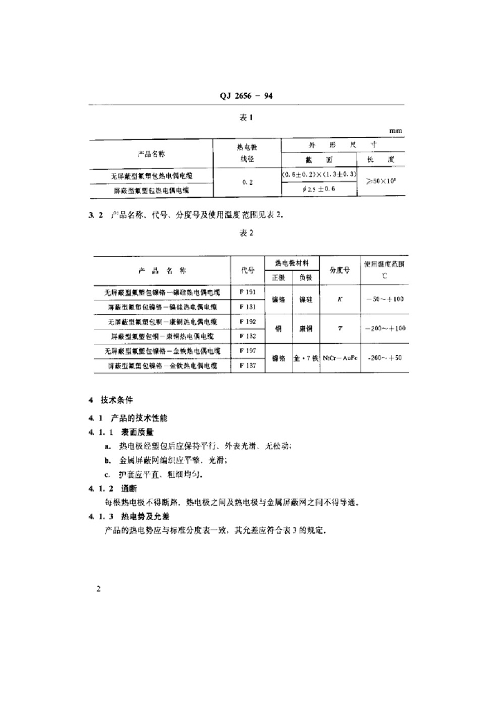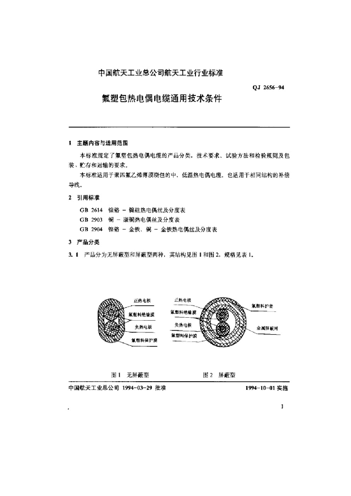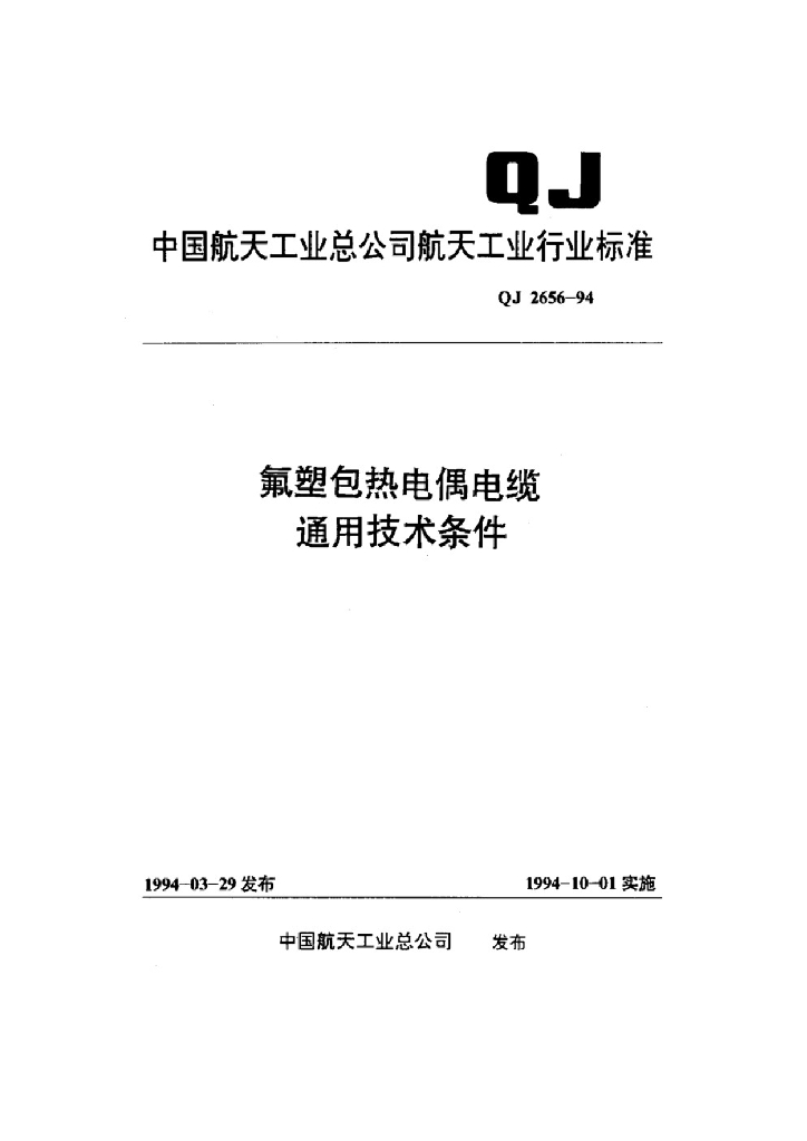 QJ 2656-1994 氟塑包热电偶电缆 通用技术条件