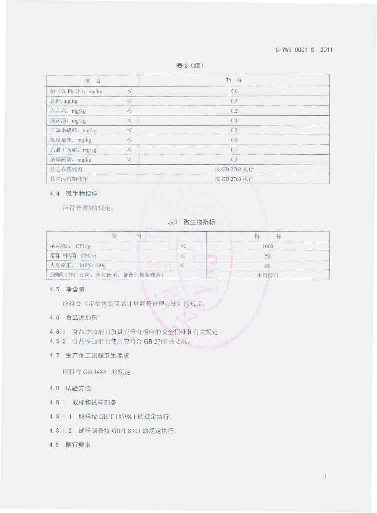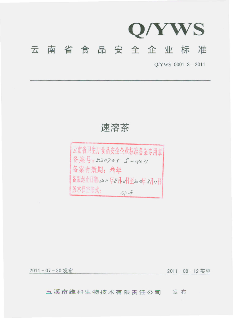 Q/YWS 0001S-2011 速溶茶