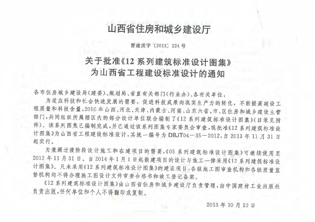 12J1 工程用料做法图集(山西省工程建设标准DBJT04-35-2012)