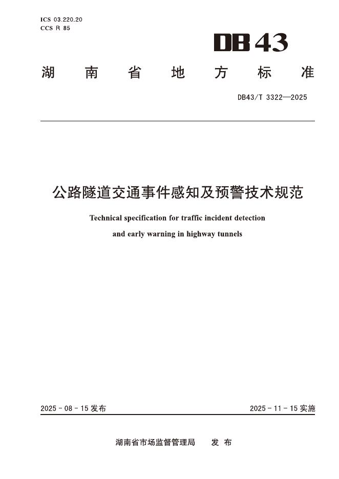 DB43/T 3322-2025 公路隧道交通事件感知及预警技术规范