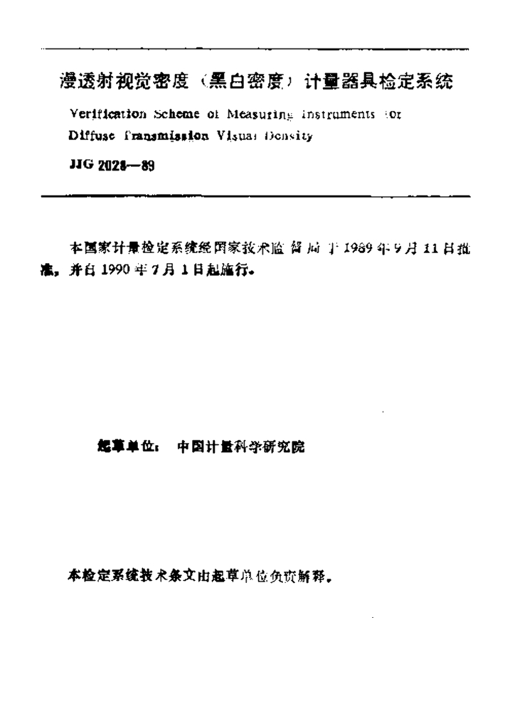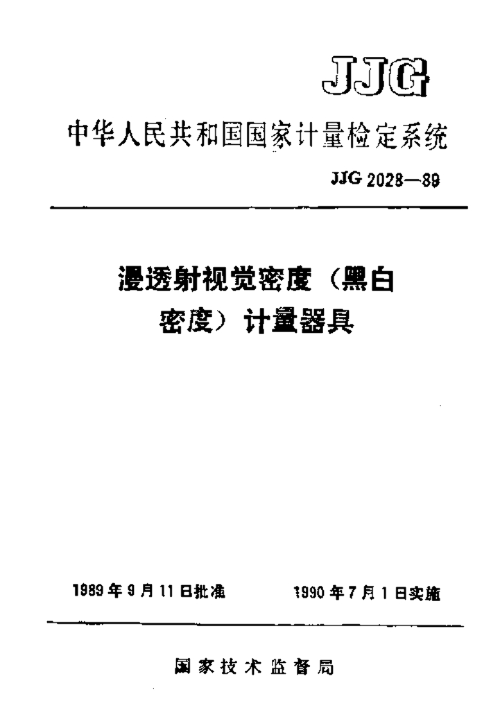 JJG 2028-1989 漫透射视觉密度(黑白密度)计量器具检定系统
