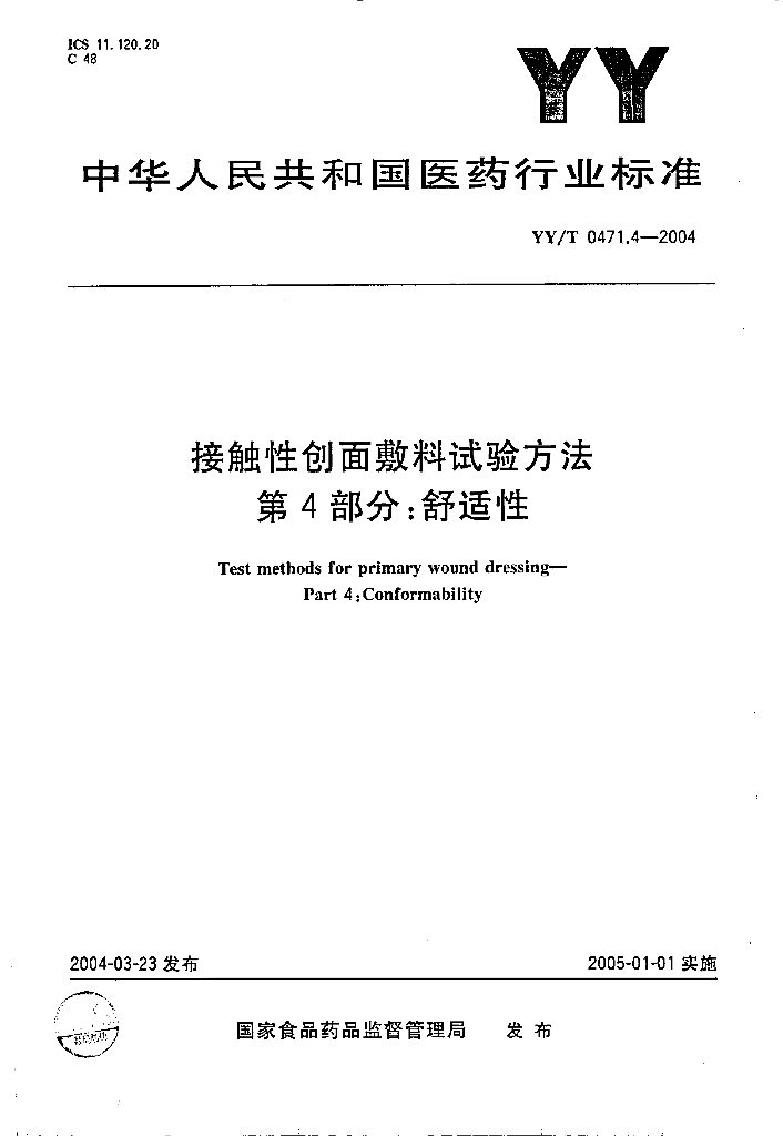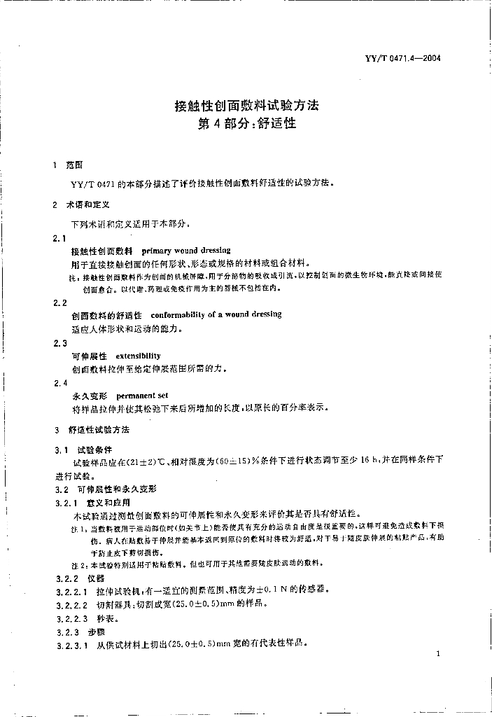 YY/T 0471.4-2004 接触性创面敷料试验方法 第4部分:舒适性