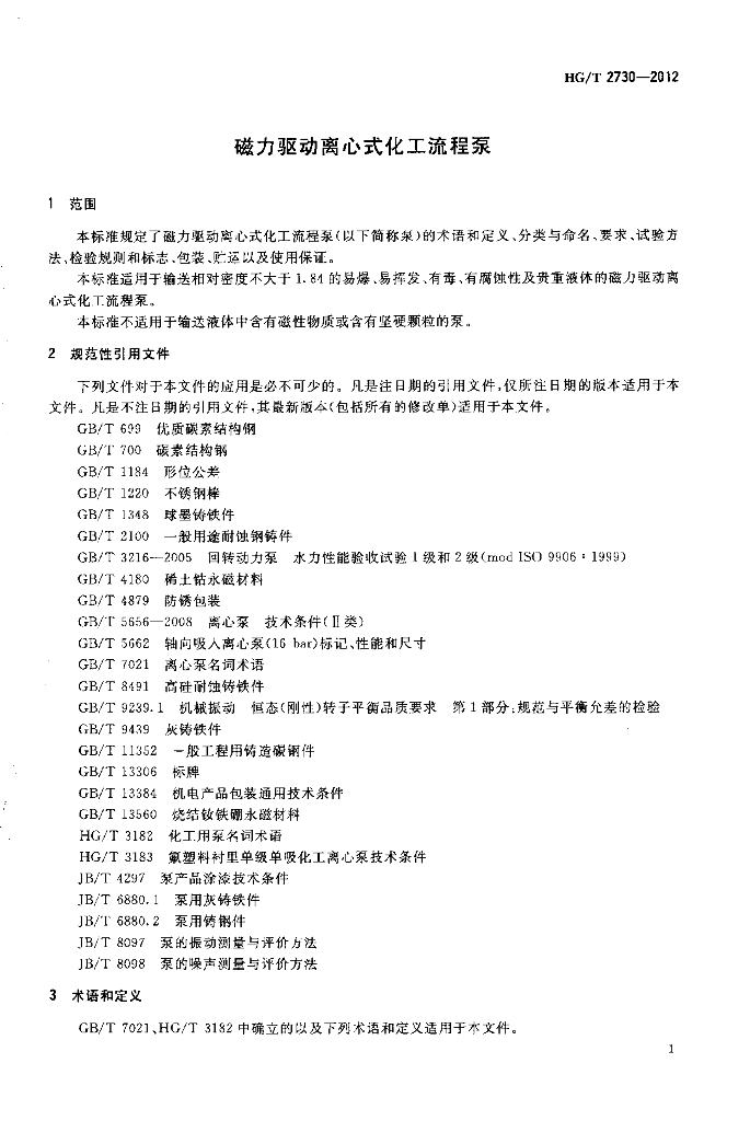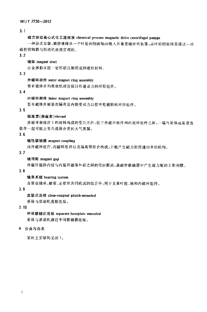 HG/T 2730-2012 磁力驱动离心式化工流程泵