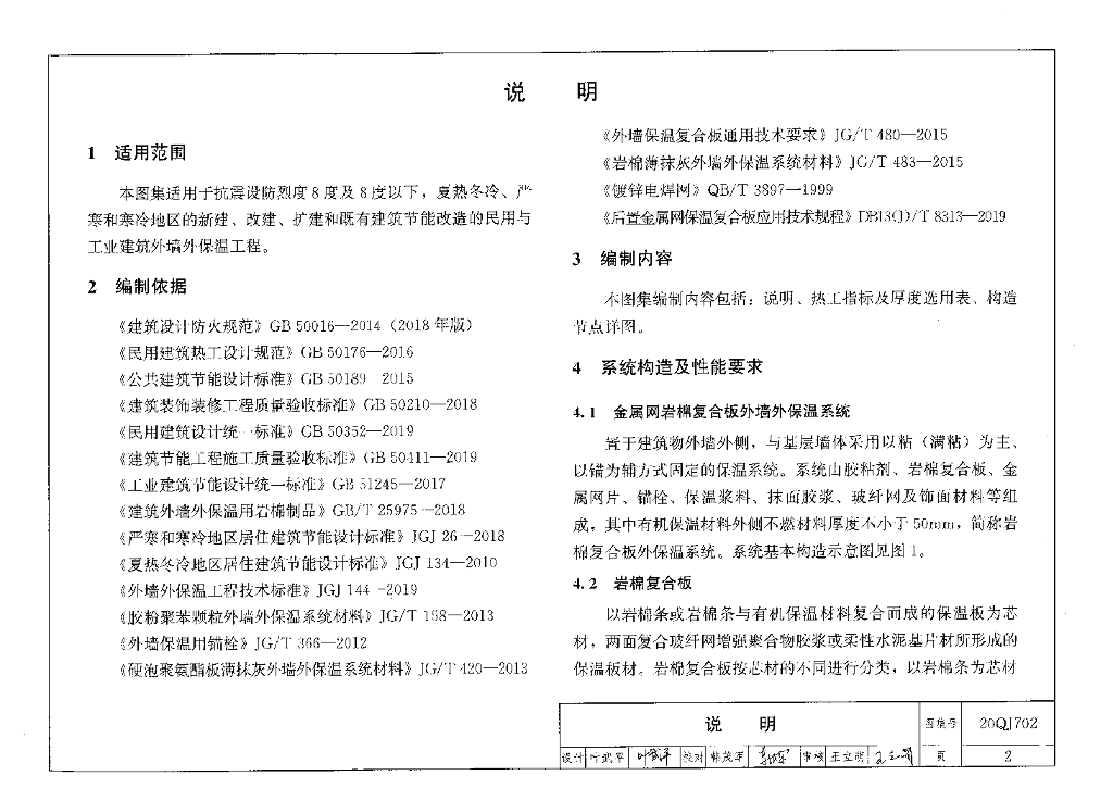 20QJ702 金属网岩棉复合板外墙外保温系统建筑构造图集