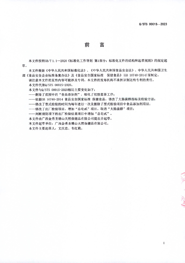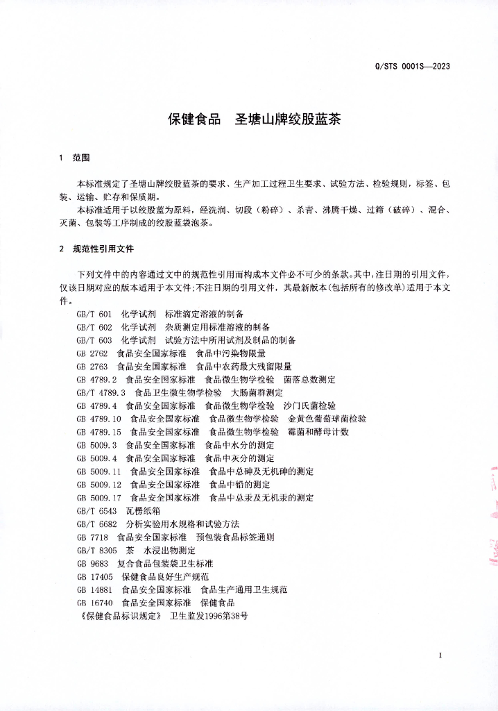 Q/STS 0001S-2023 保健食品 圣塘山绞股蓝茶