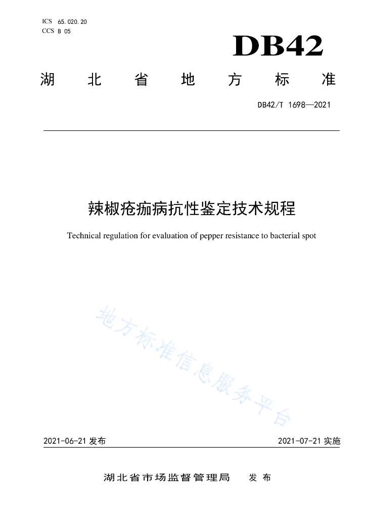 DB42/T 1698-2021 辣椒疮痂病抗性鉴定技术规程