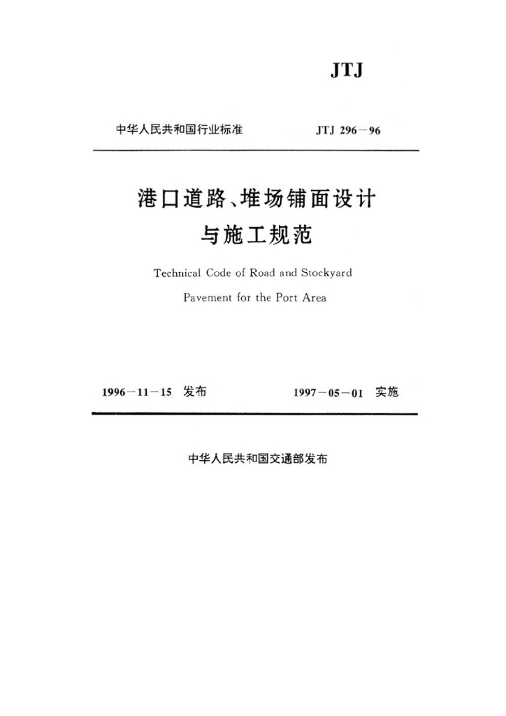 JTJ 296-1996 港口道路、堆场铺面设计与施工规范