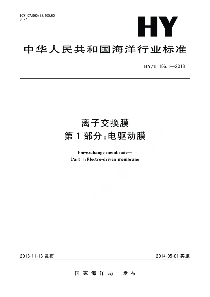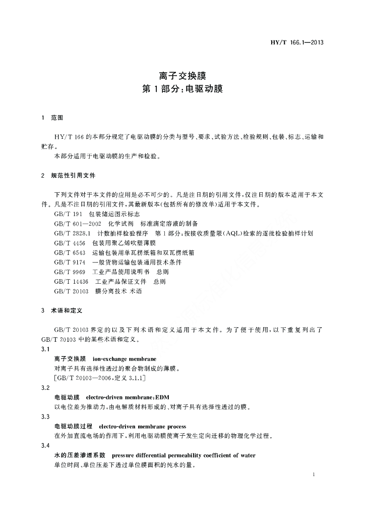 HY/T 166.1-2013 离子交换膜第1部分:电驱动膜