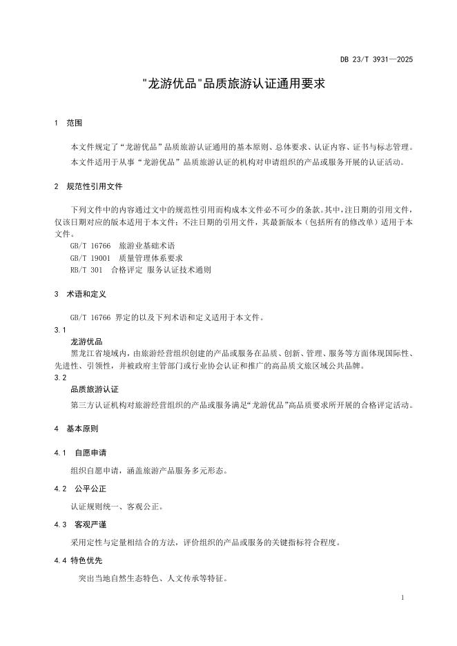 DB23/T 3931-2025 “龙游优品”品质旅游认证通用要求