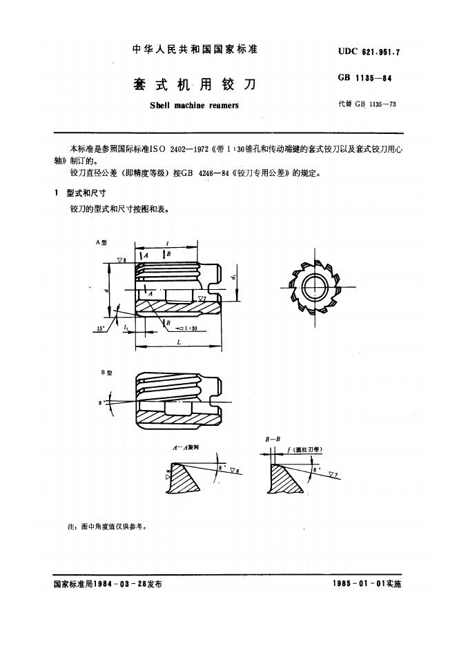 GB/T 1135-1984 套式机用铰刀