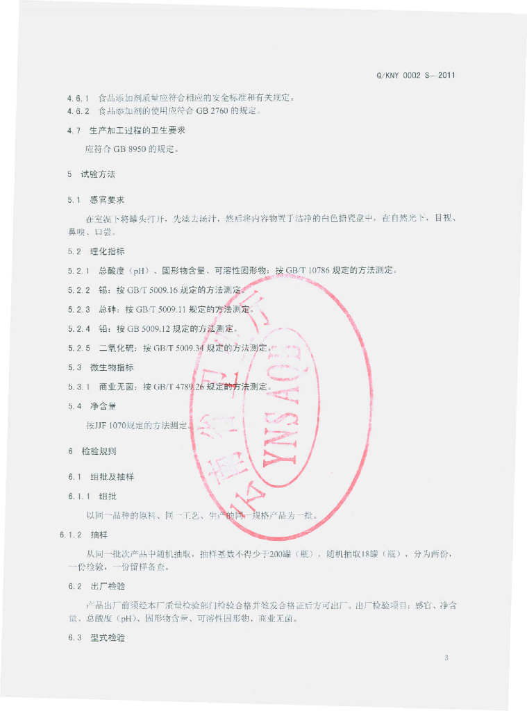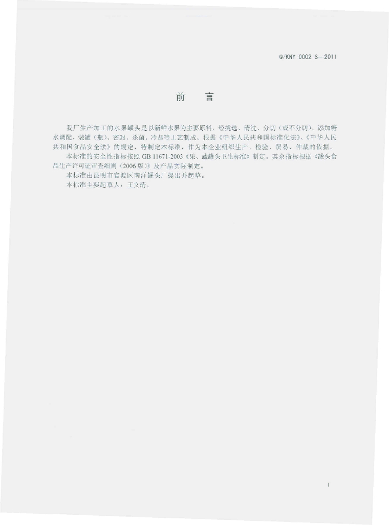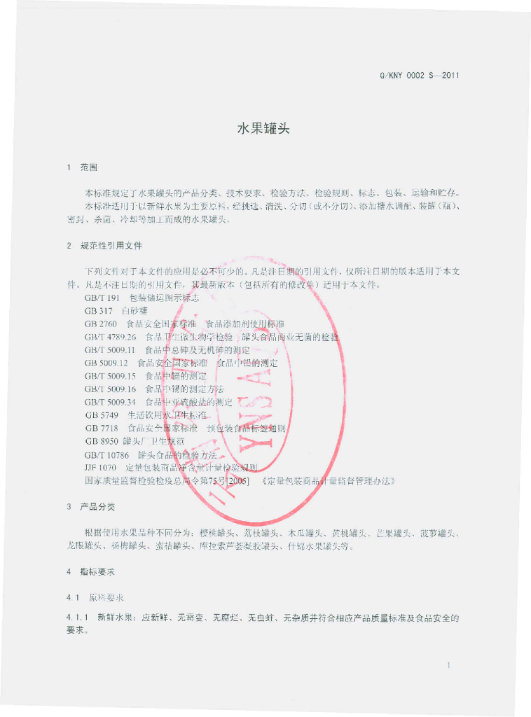 Q/KNY 0002S-2011 水果罐头