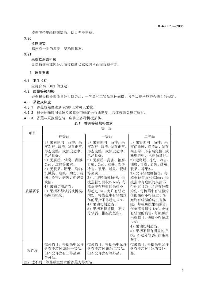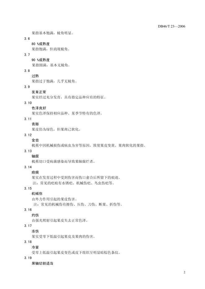 DB46/T 23-2006 香蕉质量、包装、标志及贮运