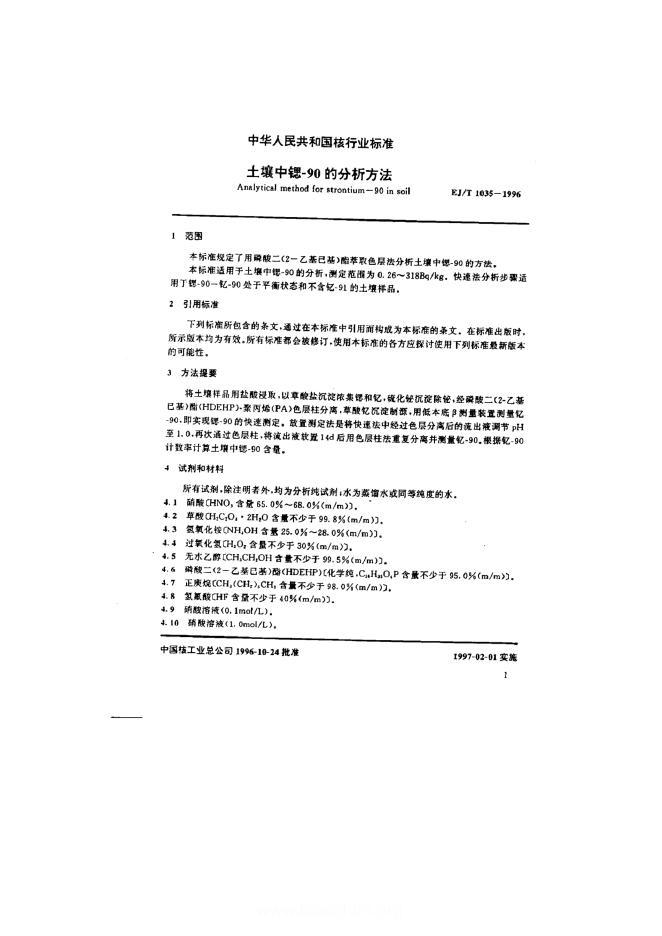 EJ/T 1035-1996 土壤中锶-90的分析方法