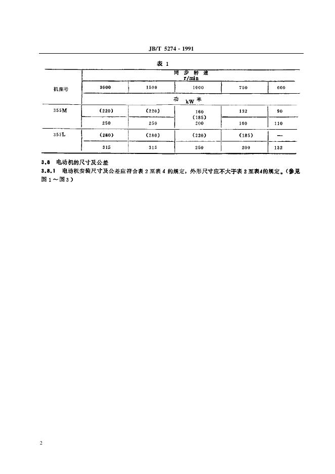 JB/T 5274-1991 Y 系列(IP44)三相异步电动机 技术条件( 机座号355)