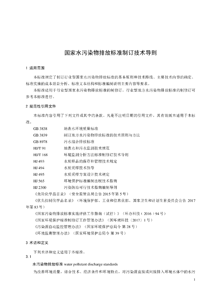 HJ 945.2-2018 国家水污染物排放标准制订技术导则