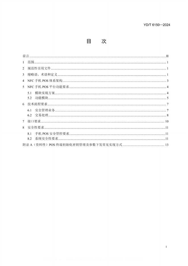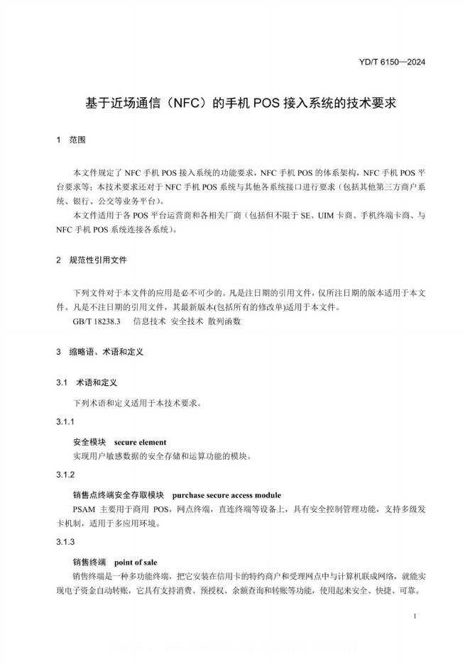 YD/T 6150-2024 基于近场通信(NFC)的手机POS接入系统的技术要求