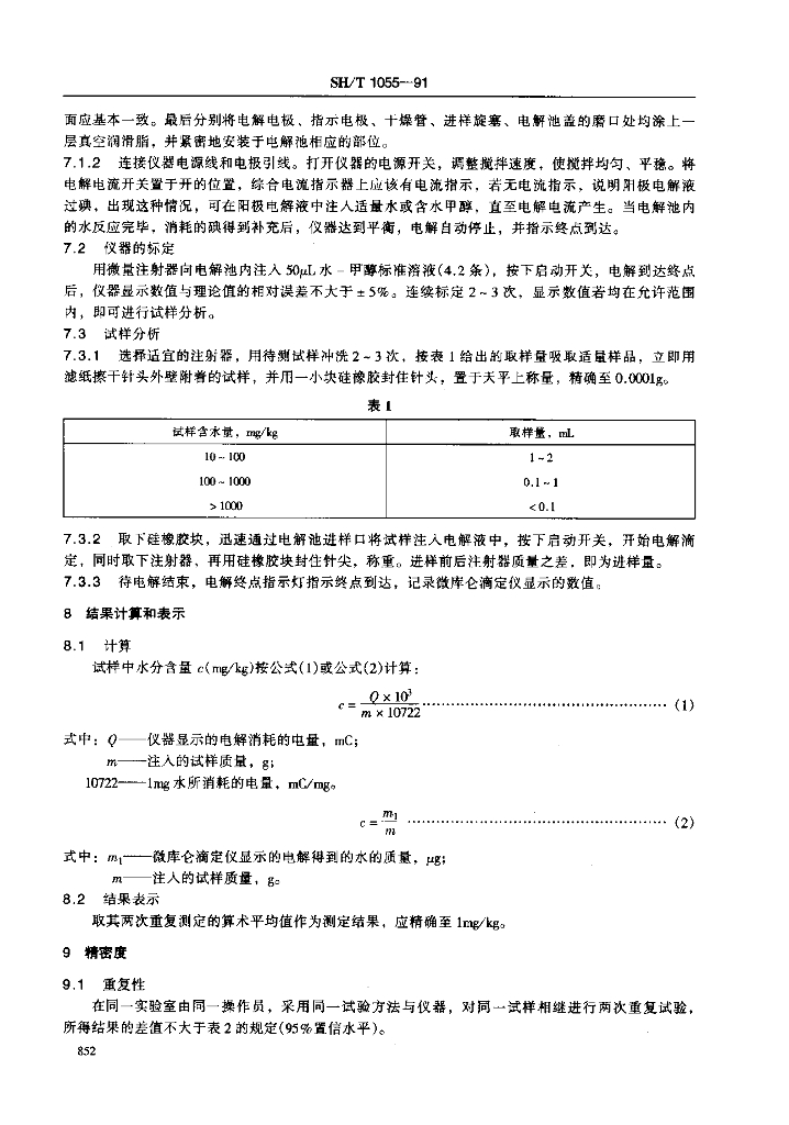 SH/T 1055-1991 工业用二乙二醇中水含量的测定 微库仑滴定法