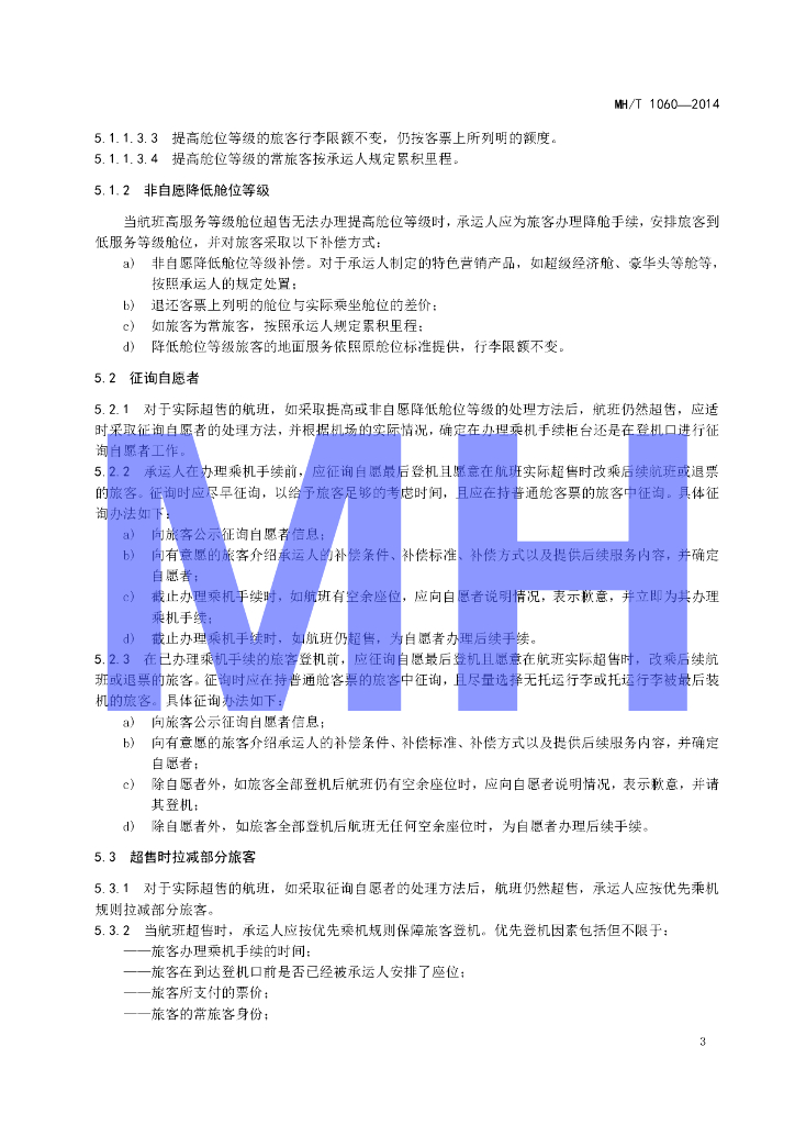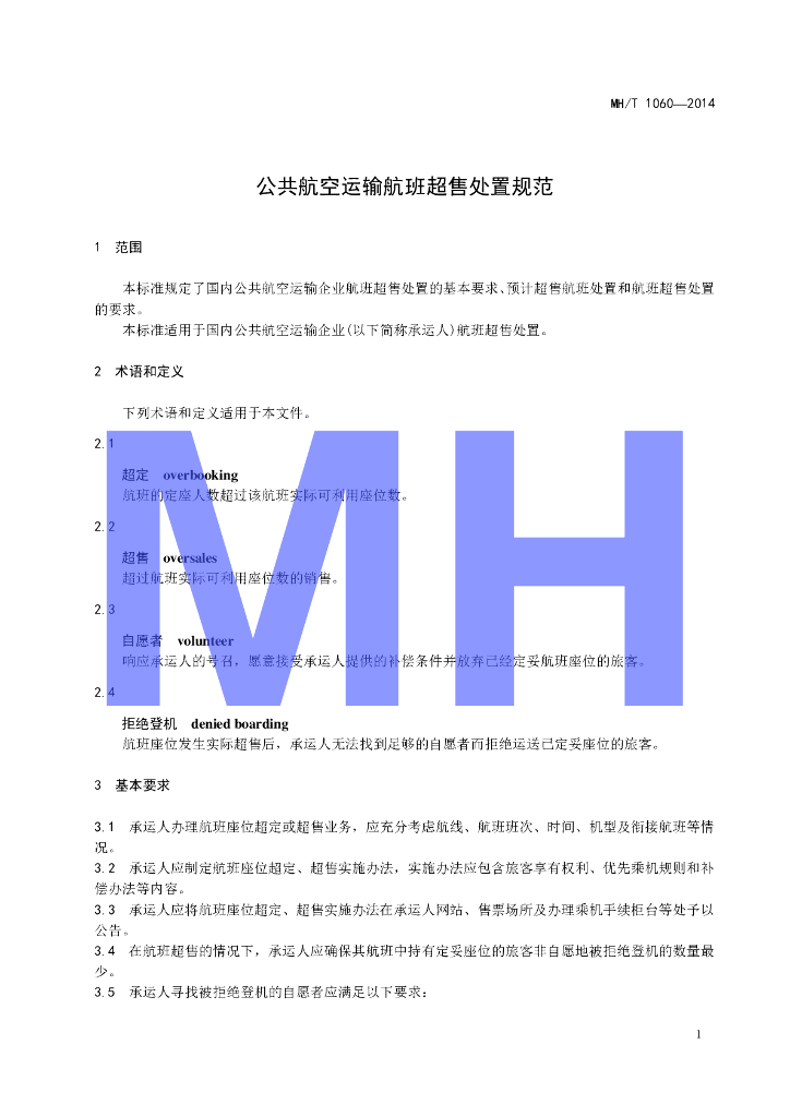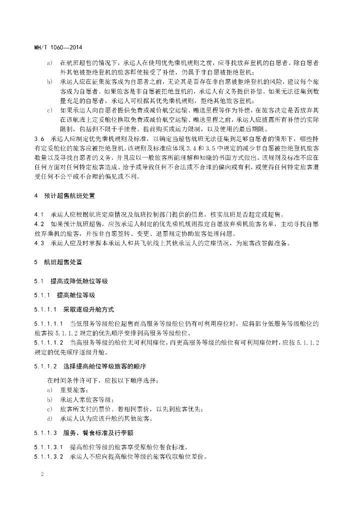 MH/T 1060-2014 公共航空运输航班超售处置规范
