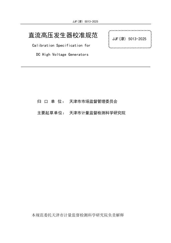 JJF(津)5013-2025 直流高压发生器校准规范