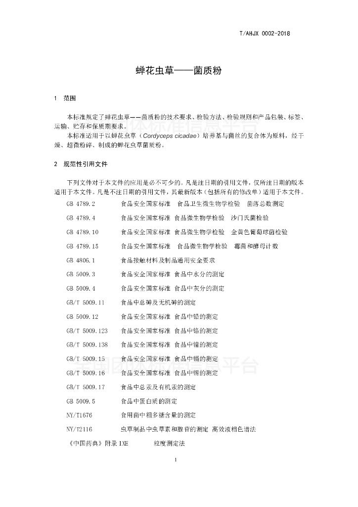 T/AHJX 0002-2018 蝉花虫草—菌质粉