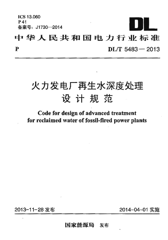 DL/T 5483-2013 火力发电厂再生水深度处理设计规范(附条文说明)