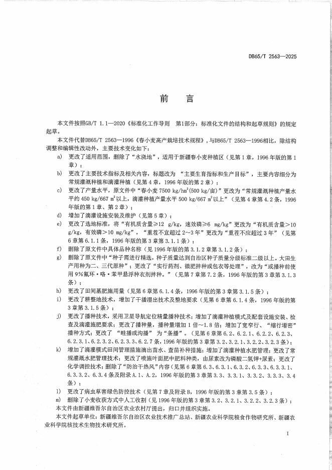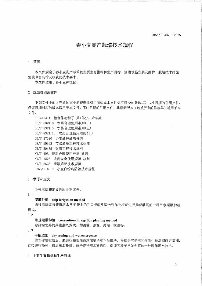 DB65/T 2563-2025 春小麦高产栽培技术规程