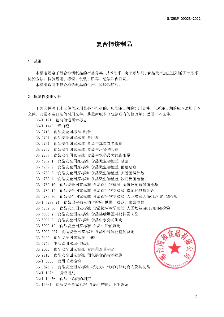 Q/GHSP 0002S-2022 复合柿饼制品