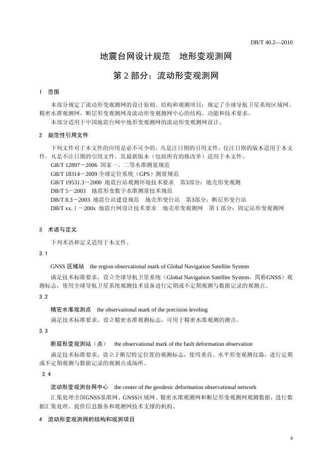 DB/T 40.2-2010 地震台网设计技术要求 地壳形变观测网 第2部分:流动形变观测网