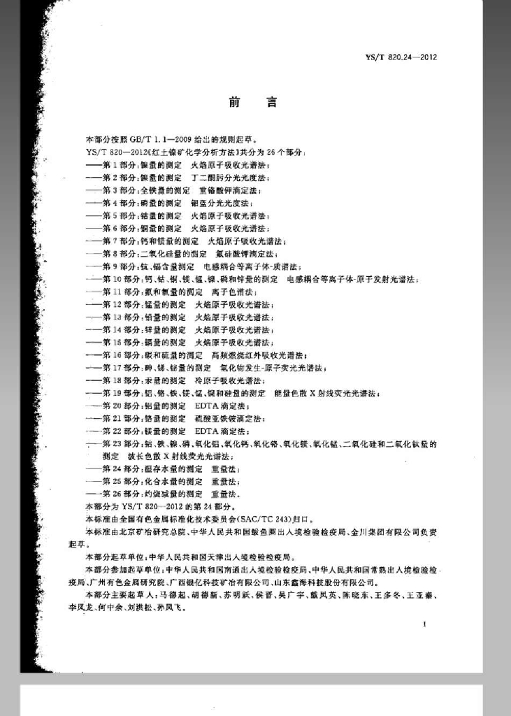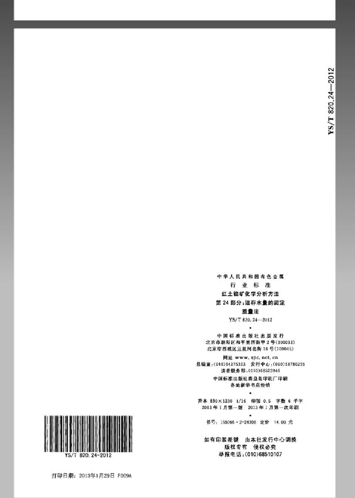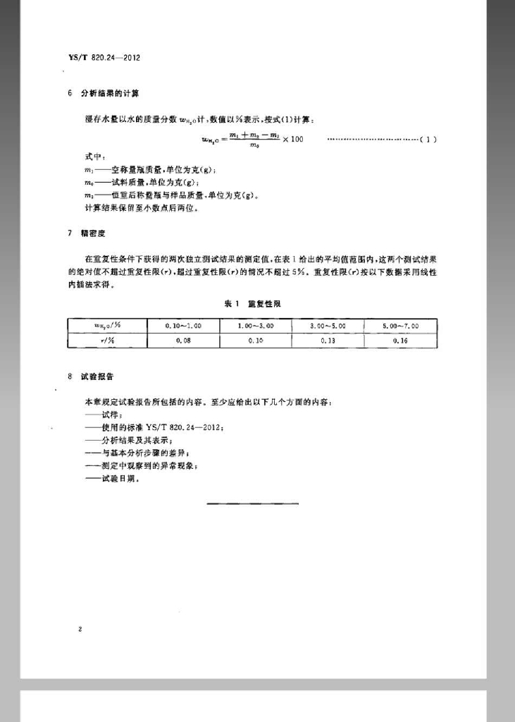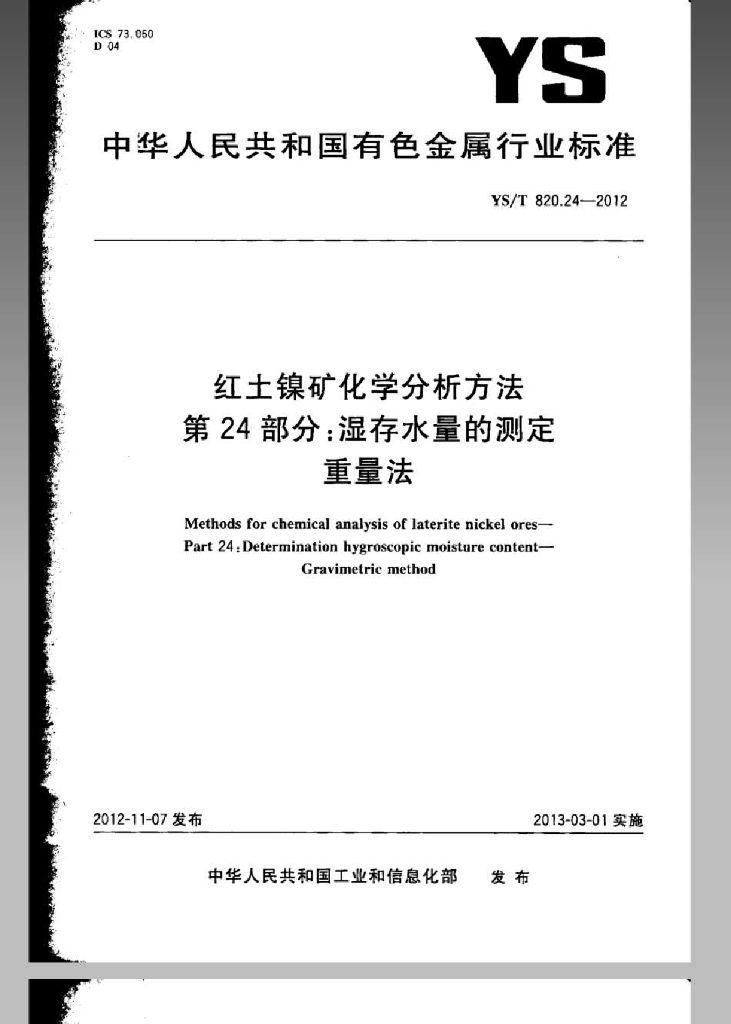 YS/T 820.24-2012 红土镍矿化学分析方法 第24部分:湿存水量的测定 重量法