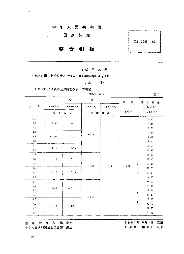 GB/T 2045-1980 铬青铜板